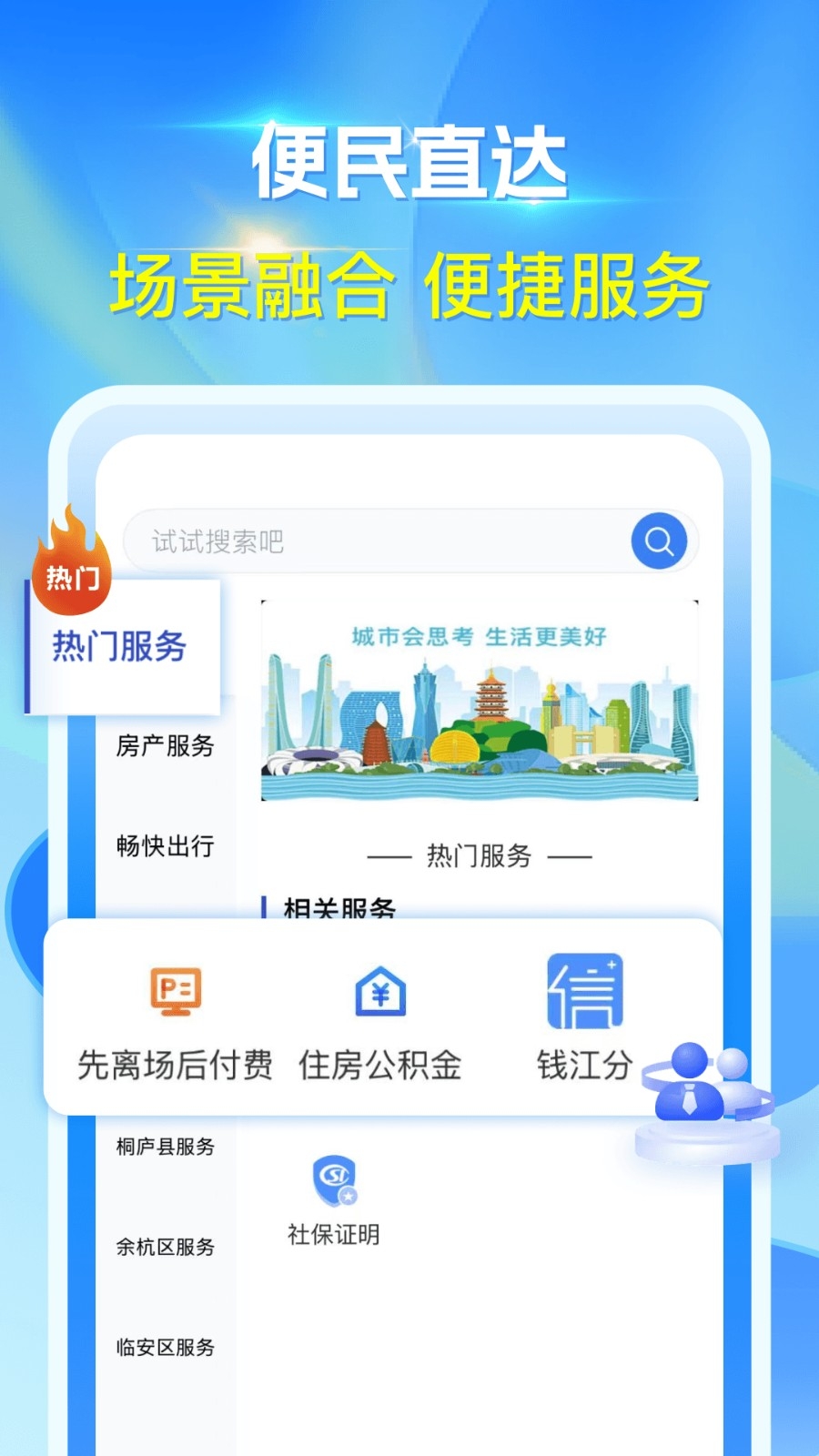 杭州城市大脑是一款为市民提供便民、民生、资讯、以及政务服务的手机客户端软件,这个也是杭州市政府官方认证的杭州办事服务App。杭州城市大脑App作为杭州市委市政府全面推进数字化改革的数智杭州市民服务端,其融合亲清在线、民生直达、办事服务等平台,遵循“大集成、广应用”的构建理念,形成办事服务、应用场景、数字新闻一体化的数字界面,坚持便民惠企的宗旨,让市民在城市的任何角落都能享受更普惠、更便利、更快捷、更精准的城市服务。