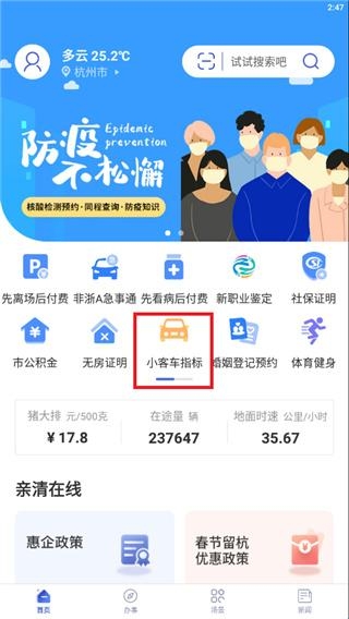 具体操作:在“城市大脑”APP上直接在首页点击“小客车指标”