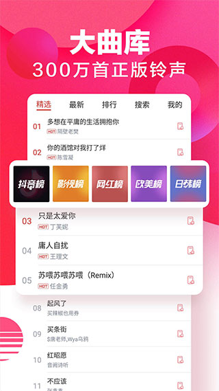 2、这里拥有许多平台的热门铃声,可以满足用户搜索铃声的需求;